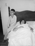 Mrs. S. A. Connell and her ten-year old son, John Charles Connell, were rescued from the West Fork of the Trinity River Sunday Morning. They are shown recovering after the ordeal. They were saved from drowning in the river by Mrs. W. M. Gentzke, Private Ollie F. Bracken, and Sergeant Lester Murphy. John Charles is shown sitting on the edge of a the bed, dressed in pajamas. Mrs. Connell is is laying in bed, recovering from shock.