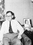 George Griffin, 67, is retiring after 48 years as a cashier at Texas and Pacific (T&P) Railway, a position he has held since 1922. He started working for the T&P in 1897 as a baggage man on the run between Fort Worth and Texarkana and in 1906 he began selling tickets in the office. He has raised two daughters, one of whom followed her father into the railroad business, Mrs. Geneva Lowther works for the Fort Worth & Denver Railroad. Mr. Griffin is shown sitting on a sofa at his home. Published in The Fort Worth Star-Telegram Morning Edition June 15, 1945.