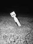 It all began when Earlton Edwards on Penn Street started out to round up some of his horses in Frenchman's Pasture, back of Penn Street. What he ran across instead was a bomb sticking nose down in the turf. The alarm was spread by word-of-mouth. In lightning time, the Shore Patrol, Military Police, and an assortment of sailors, local policemen, soldiers and civilians had gathered. The area was blocked off and all were awaiting a military expert, when Leslie Spoonts rushed up. He informed everyone that it was an innocent practice bomb brought back from an Army air base at Roswell, New Mexico by his son, Captain Marshall Spoonts, now in China. It had been transported to the field by his younger son and a his pal to scare a friend. Photograph of practice bomb lodged in pasture on Penn street. Published in The Fort Worth Star-Telegram Evening Edition June 19, 1945.