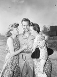 Texas home folks greet 86th Division veterans. As the train jerked to a stop in Fort Worth, some of the Fort Worth men in the 86th Division managed to find a telephone. A few minutes later, there were scenes such as these. Shown is Private Aubrey C. Anderson, 21, son of Mr. and Mrs. L. M. Anderson, with mother Mrs. L. M. Anderson and sister, Mrs. Edwin I. Gardner. Published in The Fort Worth Star-Telegram Morning Edition June 21, 1945.