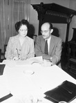 Red Cross home service specialists. Miss Janet Neel, area home service director, and Leo Durkee, chapter director of the Texas-New Mexico region, who are in Fort Worth for a four day regional training session for field and home service representatives. Both of them are shown sitting at a table looking at a book. Published in The Fort Worth Star-Telegram Evening Edition June 20, 1945.