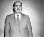 Paul Brooke, a local oil company executive, who has been named president of Texas Christian University (TCU) Evening College Student body. He plans for an evening college picnic. He is wearing a suit, standing by a bare wall. Published in the Fort Worth Star-Telegram June 22, 1945.