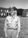 Lieutenant Colonel (Lt. Col.) Harold Pruitt is pictured here. He is shown standing in neighborhood, dressed in military uniform and smiling for the camera. He was released from Moosburg's Stalag 7A prison camp in Germany. He is back in Fort Worth (124 N. Bailey) with his wife and two-year-old daughter, Michael. Mrs. Pruitt is the former Miss Syble Laby and Colonel (Col.) met her while he was stationed in Texas. He is the son of Mrs. Bertha M. Pruitt. He graduated from the University of Alabama. He was squadron commander of the 485th Group when flak brought his B-24 down over Italy on his 19th mission. Colonel (Col.) Pruitt fought with the 15th Air Force. He will report at Atlantic City, New Jersey, for reassignment. Published in the Fort Worth Star-Telegram morning edition, June 28, 1945.
