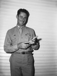 First Lieutenant (1st Lt.) Francis Hill is pictured here. He is shown standing, facing front and smiling for the camera. He is dressed in uniform. He fought in France, Germany and Belgium. He has been in the Army four years. An infantryman with the 3rd Army, he was overseas 10 months. He is the son of Mr. and Mrs. John W. Hill. He is a graduate of Arlington High School and North Texas Agricultural College (NTAC). He is also, a graduate of Texas Wesleyan College (TWC). Lieutenant (Lt.) Hill met his bride, the former Miss Louis A. Milne, daughter of Mrs. Marie S. Paxton, on the hospital ship that brought him back from Germany. He sang on programs staged for the other wounded men on the ship and his future bride, an accomplished pianist, played his accompaniment. The couple were married at Charleston, South Carolina. Lieutenant (Lt.) Hill is currently on leave and back home here in Arlington. His bride Mrs. Louis A. Hill, a Red Cross worker is in Europe. After this last trip she will join him. He will report to Brooke General Hospital in San Antonio at the end of his 60-day leave. Published in the Fort Worth Star-Telegram morning edition, June 30, 1945.