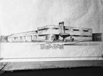 A shot of architect's drawing of new Bert and Steve Taxicab Company building. This fireproof, masonry constructed building will be erected at 13th street and Burnet street, Fort Worth, Texas. Summer and winter air conditioning will be a feature of this building, which will be faced with Texas limestone. Published in the Fort Worth Star-Telegram morning edition, July 3, 1945.