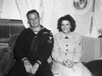 Two sailor children of Mr. and Mrs. J. W. Roach, are home together on leave. The son, Carpenter's Mate Second Class Albert J. Roach, is back from 23 months in the Solomon Islands, and daughter, Dorothy R. Corbin, seaman first class, Women Accepted for Volunteer Emergency Service (WAVES), came down from the Naval Air Station, Norman, Oklahoma, to be the brother. They are shown sitting next to each other on the couch. Published in the Fort Worth Star-Telegram morning edition, July 4, 1945.