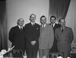 H. A. Hull, Tarrant County member of the State Legislature who authorized the bill creating the Texas Aeronautical Commission, was honored by officials of the National Aeronautic Association (NAA) at a luncheon at the Blackstone Hotel. Standing left to right are Mayor Roscoe Carnrike, H. A. Hull, Raymond Buck, Fort Worth, Texas, NAA director; W. H. Wright, state NAA director, and R. W. Cantwell, president of the Fort Worth NAA chapter.