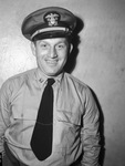 Lieutenant H. J. Barys, Medical Corps, United States Navy Reserve (U. S. N. R.), was a visitor in Fort Worth, Texas, preparatory to assuming duties as senior medical officer at the Navy recruiting office. Lieutenant Barys is a veteran of 23 months. Before entering the Navy, he practiced medicine in Chicago, Illinois, and has specialized in surgery in the service, doing duty in naval hospitals. He is now on limited service because of his wound. He is shown standing against a bare wall, wearing his uniform.