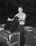 Lee E. Murray shown with his cocker spaniel, "Murray's Black Rocket." The dog was selected best of show in the Lone Star Cocker Spaniel Specialty Club's dog show in Trinity Park.
