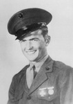 The Purple Heart, awarded posthumously to Marine Private First Class Fred J. Laughlin, of Goldthwaite, Texas, has been sent to his mother, Mrs. Frances J. Laughlin. Going into action with the 5th Marine Division on February 17, he was killed on February 22, 1945. He is pictured in his military portrait photograph, wearing his uniform.