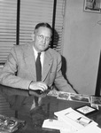 A. M. Pate Senior, has been elected to succeed the late Carl Wollner as president of Panther Oil and Grease Manufacturing Company. The announcement came after a meeting of E. H. Beall, A. B. Canning, Carl Shanks, and Pate, directors, who elected the president. Pate, a Fort Worth resident for the past 23 years, is one of the organizers of the company and has assisted in its management since its inception. He is a native of Tennessee, he moved to Dallas in 1916 and soon after went into service in World War I. For several years after the war, he and Wollner were associated with the old Oriental Oil Company of Dallas. In 1922, Pate and Wollner moved to Fort Worth and formed the Panther Oil & Grease Company. Pate is a member of the Business and Professional Men's Post of the American Legion and of the Fort Worth Sales Executives Club. In this picture he is wearing suit with tie and glasses. He is sitting by a desk and there are many pictures and some documents on the desk. Published in Fort Worth Star-Telegram, evening edition, July 19, 1945.