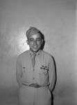 Flight Officer Stephen V. Painter Junior (Jr.), glider pilot who made three airborne attacks in the European theater and is now spending a 30-day leave with his parents, Mr. and Mrs. S. V. Painter of Joshua. He is shown standing against a bare wall, wearing his military uniform and smiling for the camera. Besides the Purple Heart he wears the Air Medal with two clusters, and the presidential unit citation. Between the big landings in Normandy, Holland and Germany, he was co-pilot on C-47s and took special combat training. Published in the Fort Worth Star-Telegram evening edition, August 6, 1945.