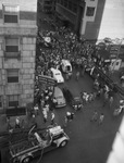 A part of the crowd that gathered on West Seventh late Sunday afternoon as an audience in the Worth Theater moved in orderly fashion from exits after smoke from a small fire in the basement of the building had filtered into the main theater. It was only a single alarm fire and the blaze was extinguished in a few minutes and the firemen, working in masks much of the time, had completed mopping up water and tapped out the spectacular downtown call 26 minutes after the alarm was turned in at 6:33 p.m. Overhead photograph of a crowd standing on the street in front of buildings. Published in The Fort Worth Star-Telegram Morning Edition July 30, 1945.