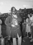 One of a squad of firemen who quickly donned masks to enter the smoke-filled Worth Theater to combat a small fire in the basement of the building. Several firemen were overcome and had to be assisted outside but soon recovered and were back on the job. Photograph of a fire fighter wearing his uniform and a mask. Published in The Fort Worth Star-Telegram Morning Edition July 30, 1945