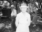 Baylor County Cowboy's Reunion at Seymour. Mrs. Joe Carr, who was born at Weatherford 81 years ago was among the prize winners at last week's Fiftieth Anniversary Baylor County Cowboys' Reunion at Seymour. Mrs. Carr, was awarded the oldest woman at the reunion. She now lives in Seymour. Mrs. Carr is shown wearing a dress and hat. A ribbon is pinned to her dress that reads, "Old Settlers Reunion Seymour Texas". Published in The Fort Worth Star-Telegram Morning Edition August 1, 1945.