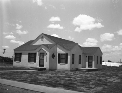 New homes have been built in Brownfield, Texas, during a period of steady growth. Pictured is the residence of R. L. Harris. In the background are telephone poles.