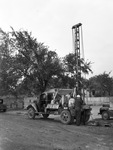 George Long of Austin, Texas, chief core driller with Texas State Highway Department, shown beside the core drilling machine performing foundation tests.