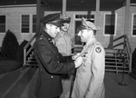 Major Powell H. Taylor pinning a medal on John P. Irons.
