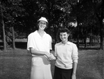 Day, J. C., Jr. (Mrs.); Henson, Jo (Miss); Visors; Sweaters; Fort Worth Women's Golf Association; Golfers; Golf; Golf Courses; Golf Clubs; Women's Texas Open Golf Tournament; Colonial Country Club