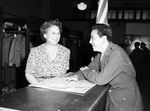 Mrs. Giles W. Day and Private J. L. Martin at Fort Worth's Service Men's Center.