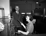 Miss Ada Mae McKillen, PBX operator of Monnig's with her boss, E. C. Jordan.