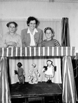 Mrs. Cy Martin and her sons, Cy, 11, left, and David, 8, shown with their puppet show.