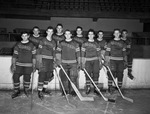 Fort Worth Rangers ice hockey players (top row, left to right) Otto Schmidt, Jack Stover, Ken MacKenzie, Ray Powell, Frank Eisenzoph (front row, left to right) Paul Bedard, Stan Jones, Ed Rafferty, Jerry Jubeck and Bill Jones.