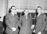 War Finance Committee dinner. McCloskey General Hospital patients. Master Sergeant Oliver C. Thomas of Lubbock; Private John Highsmith, Menard, and Staff Sergeant Marcus Taylor, San Angelo.