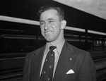Herbert H. Gilbreath, Fort Worth, Texas, oil well driller and war refugee who arrived home after a trip to England on the United States liner Washington. He is wearing a suit and necktie.