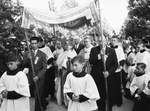 Blessed sacrament being carried in a procession during the Feast of Christ the King.