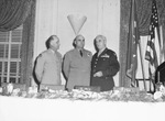 Fort Worth Victory Loan Campaign. Left to right, Major General James P. Hodges, Lieutenant General Ira C. Eaker and Lieutenant General B. K. Yount.