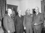 Victory War Bond drive. Left to right. William Holden; Mayor Carnrike, General Eaker and Ben E. Keith.