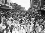 Victory Loan Drive. The crowd viewing the parade near the reviewing stand on Houston breaks ranks as the last unit marches.