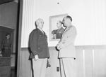 Victory Loan Campaign. Left to right, General B. K. Yount and Ira C. Eaker, chat before the portrait of Lt. Gen. James Doolittle, under whose command General Hodges. Here General Hodges sees two of his commanders, one in the flesh, the other in oil.