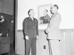 Victory Loan Campaign. Lieutenant Colonel Charles Baskerville, left, poses with Lieutenant General Ira C. Eaker, who officially opened the current AAF art exhibition in the Public Library.