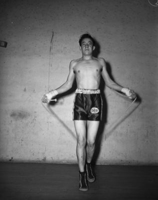 Fort Worth amateur boxers have stepped up their training in preparation for the Fort Worth district Golden Gloves Tournaments. Jack Watkins is skipping rope to improve his footwork and quickness. Watkins is a new boxer, but he is rapidly developing his skills. He is a seventeen year-old from the South Side and weighs in at 132-pounds.