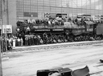 Texas and Pacific Victory Loan Rally. Workers in Texas and Pacific Railway's yard, swarm over side-tracked locomotive.