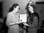 Mrs. Will K. Stripling, left, receiving plaque from Mrs. Berger Erickson.