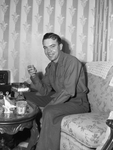 Sergeant Fletcher L. Wright, former Prisoner of of War, eating.
