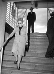 The Bradshaw murder case. Mrs. Doris Bradshaw, 27, charged with murder, descending stairs.