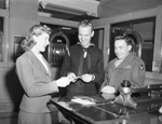 Victory Loan drive. Mrs. Thelma Northcott selling bonds to Lon Fishback Junior, sailor; and R. H. Coleman Junior.