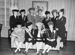 Daughters of the American Republic State officers. Clipping photograph caption: Plan State Convention-State officers of the Daughters of the American Revolution pictured at the luncheon Friday at Colonial Country Club held in connection with the board meeting which concludes here Saturday were, seated, left to right, Mmes. Fred B. Ingram, Dallas, regent; E.S. Lammers, Alamo, vice president general from Texas; Earl B. Mayfield, Tyler, vice regent, and Jack Coulson, chaplain. Standing, left to right, Mrs. O. E. Baker, Abilene; James T. Rountree, Austin; Mrs. S. R. Knight, San Antonio; Mrs. H. R. Potter, Waco; Mrs. George S. Fraps, College Station; Miss Elsie Wills, Dallas, and Mrs. Edward R. Barrow, Houston, recording secretary. Photograph showing eleven well dressed women posed. There are seven standing behind a sofa. On the sofa in front of them are four seated women.