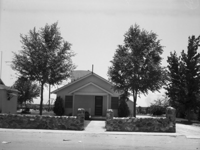 New homes mark the growth of Kermit, Texas, which between 1930-1940 staged a comeback after an oil boom died out. Shown here is the residence of Fritz Estill. There are two tall trees and several bushes in the front lawn.