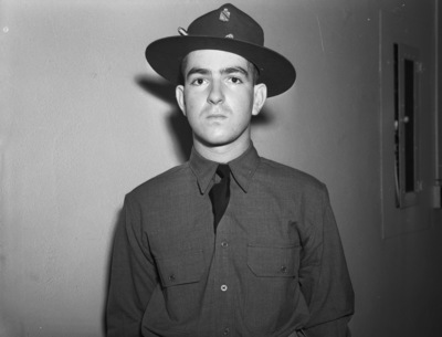 Will W. Martin, Fort Worth, Texas, national guardsman and June graduate of North Texas Agricultural College at Arlington, Texas, who received an appointment to go to West Point. He is wearing a long-sleeve, button-up collared shirt, a necktie and a hat.