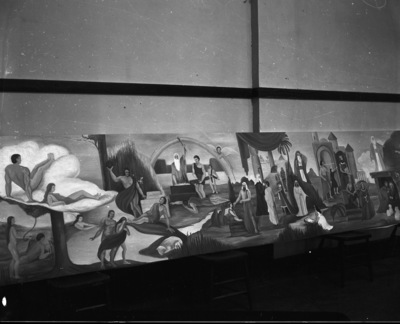 This mural depicting Biblical characters, painted by two 14-year-old boys, John Allred and Robert Ellis, will be dedicated at a joint departmental assembly at Hemphill Presbyterian Church. The two Sunday school students spent several months completing the piece. The piece is to be dedicated by Reverend J. Hoytt Boles, pastor, and displayed in the church.