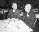 Meeting attendees having breakfast together : Henry James (left), president of the Farmers and Mechanics National Bank, Abilene, and William A. McGregor (right), vice president of the Guaranty Trust Company of New York.
