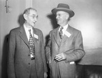 W. H. Patrick, left, Clarendon, president of the First National Bank and a banker for 57 years is one of the oldest delegates. He is shown with G. A. Swaim, Sweetwater, who presided at the session.