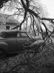 Winter swept into Fort Worth, Texas Monday night, bringing hail, sleet, and rain, topped by early morning freezing temperatures which wrought damage. Part of an ice-laden tree collapsed on a parked automobile at 6107 East Lancaster Avenue, Fort Worth, Texas. The picture depicts a tree that has fallen on a parked car. Star-Telegram February 27, 1945
