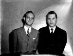 Two new instructors in the School of Theology at Southern Baptist Theological Seminary will begin their duties in September. Left, Reverend J. A. Barry Junior, Greenville, South Carolina obtained his A. B. degree from Furman University at Greenville in 1941 and will receive his Master of Theology degree from the seminary this spring. He has a wife and daughter, Ann Royce, 2 1/2 years old. Reverend C. Guy, Jackson, Tennessee, right, earned his A. B. degree at Union University in Jackson in 1940 and his Masters of Theology at he the seminary here in 1943. He married the former Terrye Maddox of Fort Worth. He is the son of Reverent R. E. Guy, professor of Greek at Union University. Published in the Fort Worth Star-Telegram evening edition, March 1, 1946.