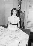 Blue-eyed Anita Eloise Nolan celebrating her eighth birthday. She is in the 2nd grade at Our Lady of Victory Academy and lives with her mother. She is sitting at the end of the dinning table with a birthday cake. The occasion marked the fifth anniversary that she has observed with out her father Captain Willis Nolan who is 7,000 miles away. Gifts that arrived in the mail, however, spoke of him - all the way from Southern Honshu Island Japan. Captain Nolan has been in Japan for three months and was previously stationed in Alaska for 18 months. He is a graduate of Texas A & M College, and formerly assistant county agent with the Soil Conservation Service here for two years. Published in the Fort Worth Star-Telegram evening edition, March 1, 1946.